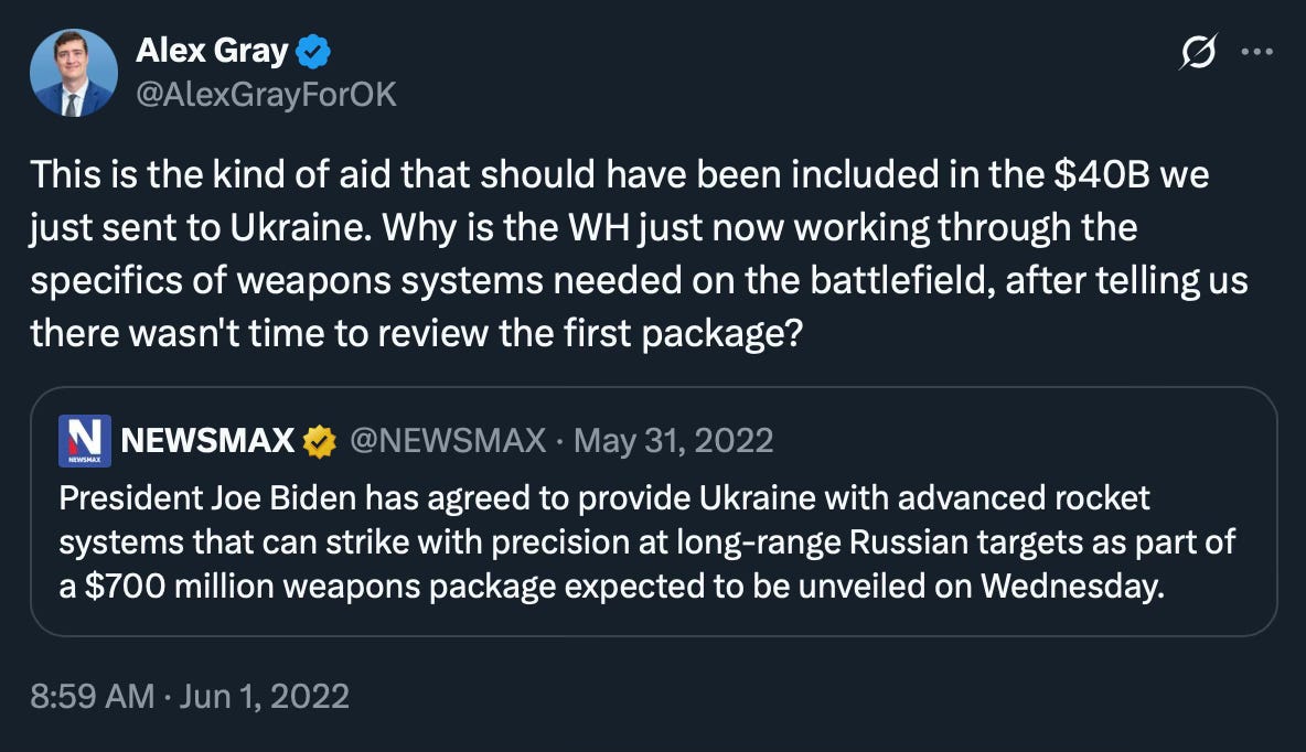 While this is a fair assessment, it entirely contradicts and nullifies Gray’s own take on Russia’s military actions in Ukraine in 2022. If Trump’s military actions can be justified as hemispheric defense against U.S. adversaries’ encroachment in the Western hemisphere, then Russia’s 2022 attack against Ukraine must verifiably be justified as its national security strategy against NATO’s eastward expansion toward Russian borders, and its aims to “restore its influence in the post-Soviet space,” according to The Ukrainian Review. But that view does not align with Gray’s outlook, which is on display on his Twitter/𝕏 feed, advocating that more U.S. funds be sent to help Ukraine resist Russia’s “unprovoked” invasion.